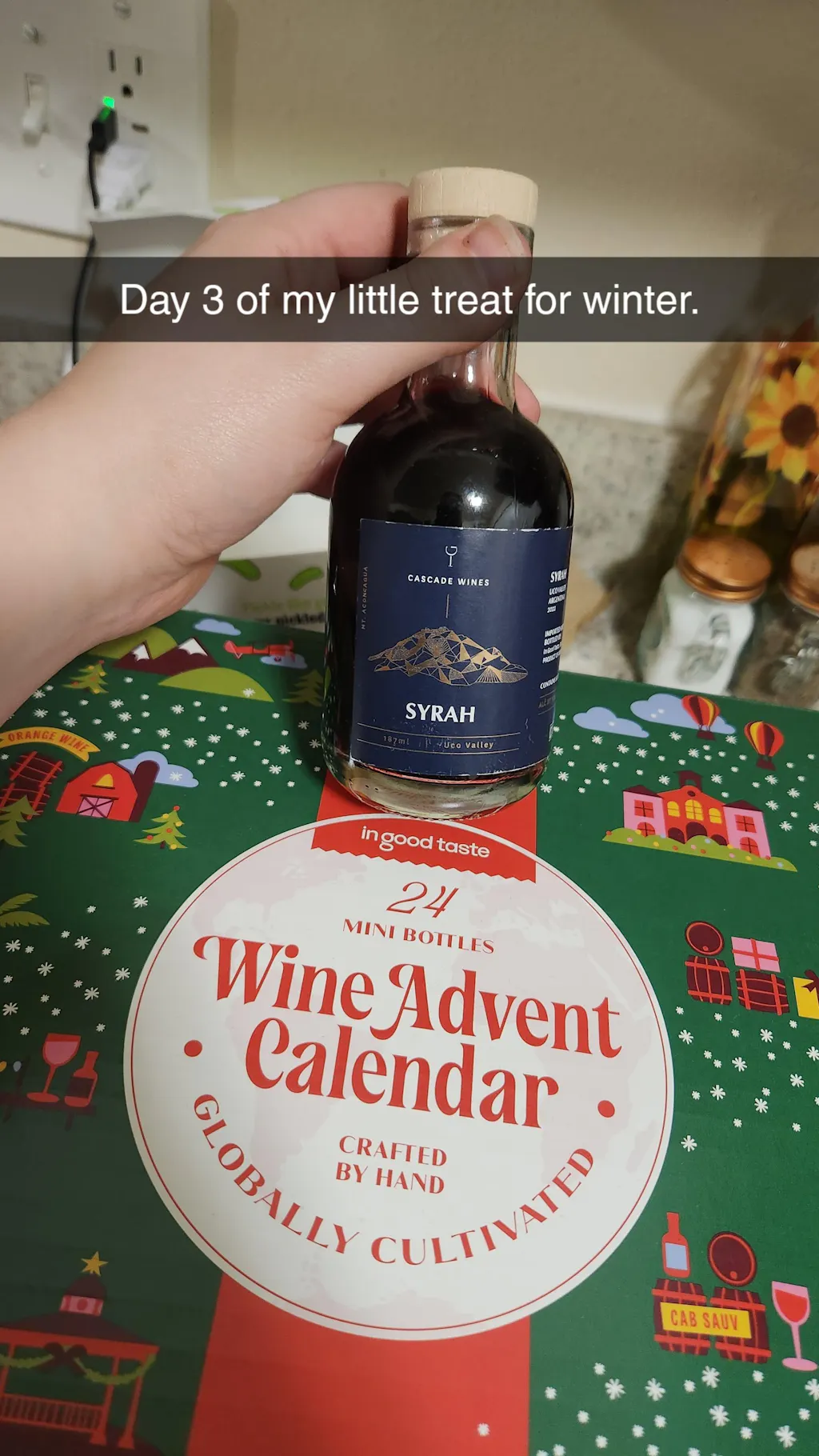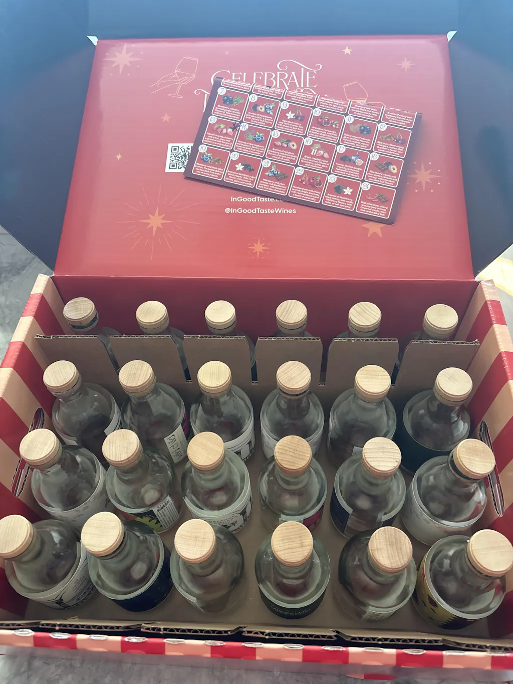 This is super cool and I enjoy the wines (of corse some are better than others due to preference). But i love this and honestly I want a wine advent for EVERY month. Like I went a 24 mini box per month subscription stat!