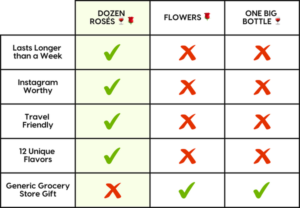 My wife loved the idea of a dozen Rose wines. The different types were refreshing & just the right size to taste! Excellent price and amount.