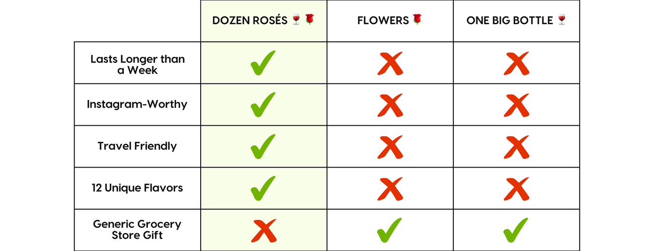 A Dozen Rosés features 12 unique mini bottles from around the world— handcrafted by our winemaker Matt. Think dry Italian rosé, mouthwatering California blends, bubbly to celebrate life’s mini wins—and so many more surprises.